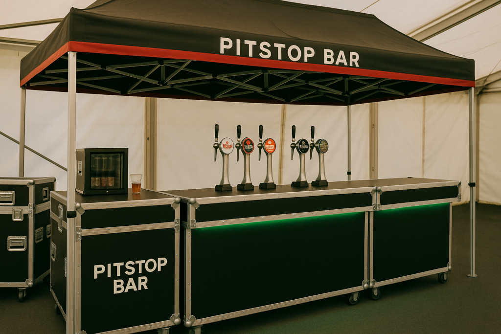 Born from the world of professional motorsport, the Pitstop Bar brings precision, performance, and premium service to every event. Built from modular flight cases, our bar setup is as versatile as it is striking—ready to adapt to everything from high-energy festivals to VIP hospitality suites.
